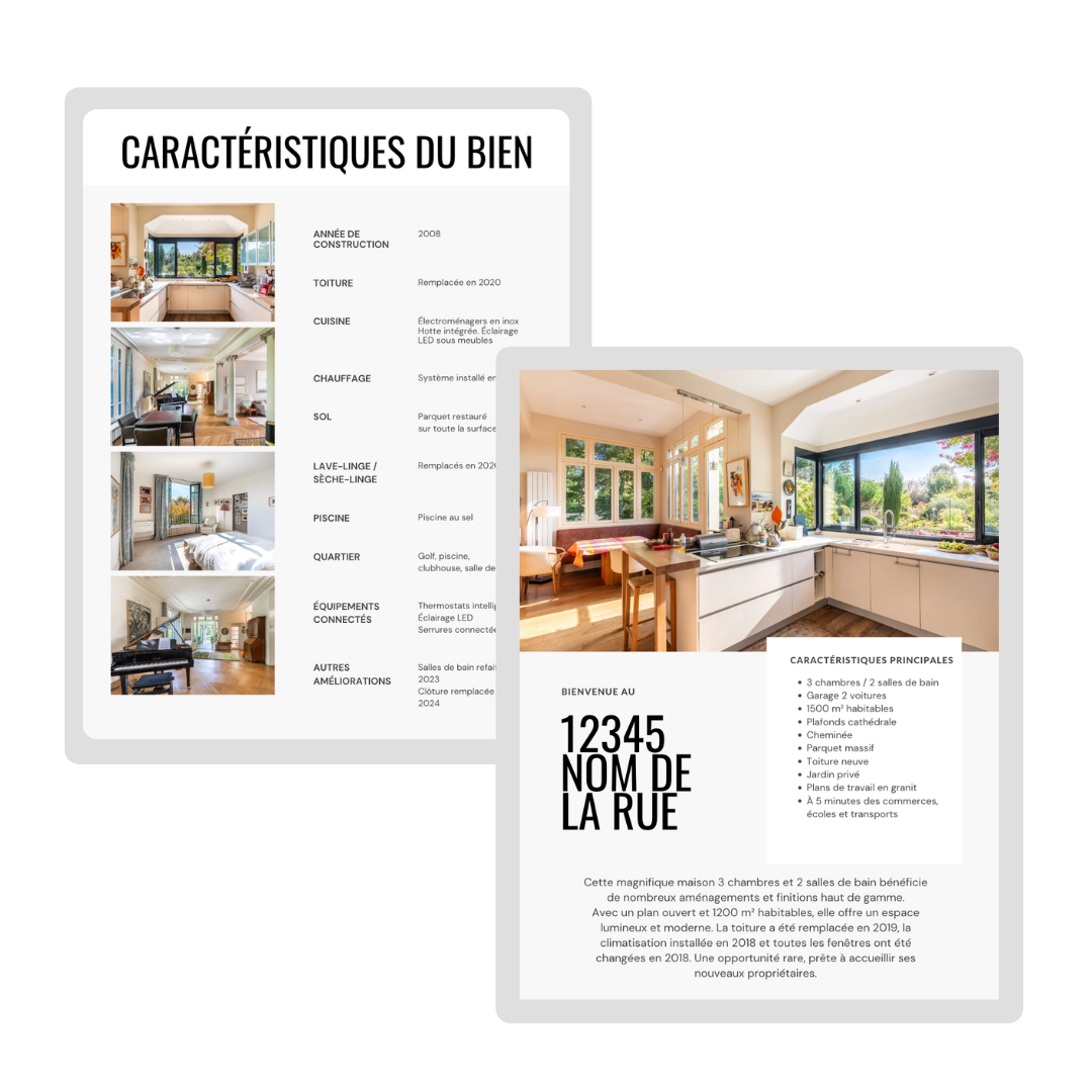 Annonce à vendre, nouveau bien, vendu… Des visuels ultra-pro pour mettre vos biens en valeur et vous démarquer immédiatement de vos concurrents.